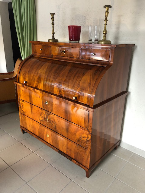 Zylinderbureau, Biedermeier Nußbaum