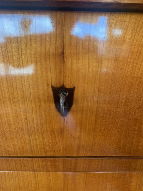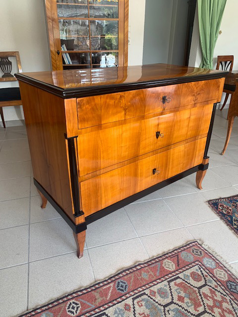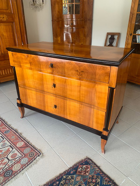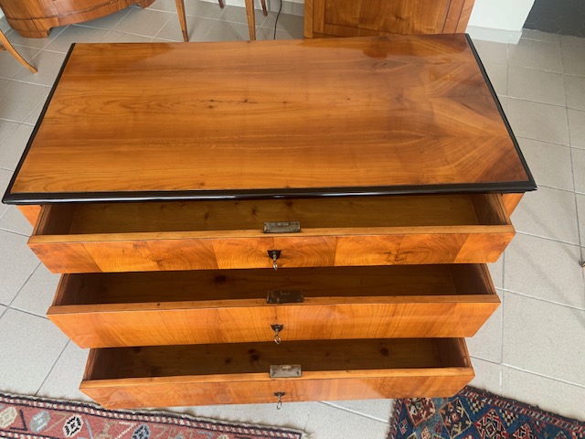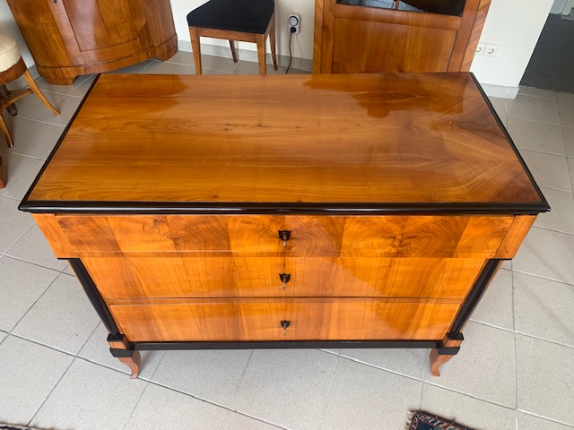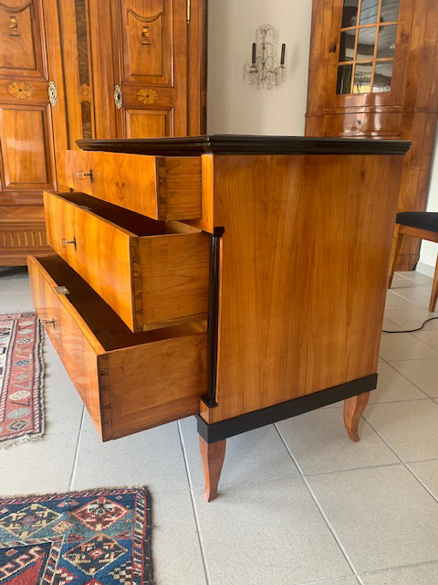 Kirschbaum furniert, wohl München um 1820, 3-schübig, schönes Furnierbild