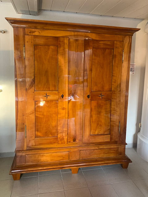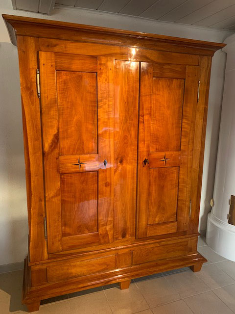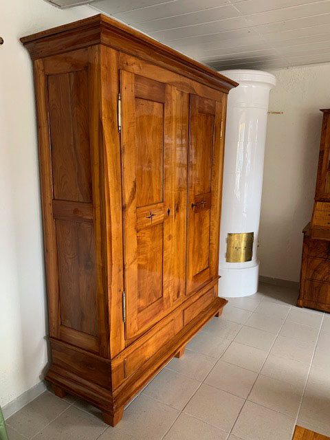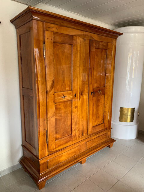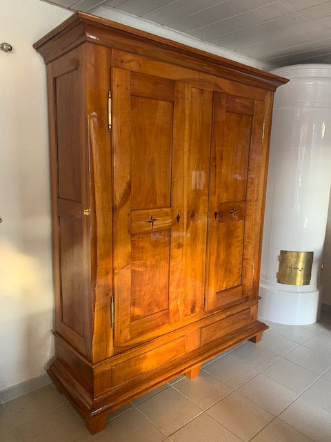 Kirschbaum massiv, 2-türig, Süddeutschland um 1820, sehr schöne und warme Farbgebung